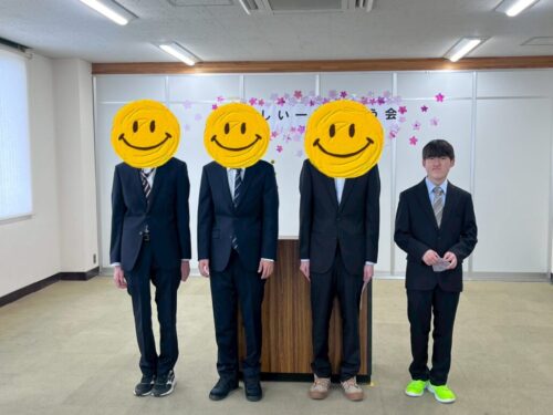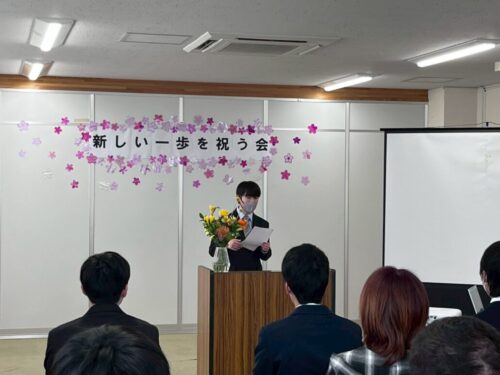 真新しいスーツに身を包み、緊張した面持ちで入場された4人。この度ご縁を頂き、エコミットで新しいスタートを迎えました。保護者の皆様、さらにメンバー全員の前で自己紹介をして頂き着席。そして、4名を担当された先生方より、温かい中にも力強さを感じられるメッセージを頂き、代読させていただきました。先生方の温かい言葉に職員も胸が熱くなりました。