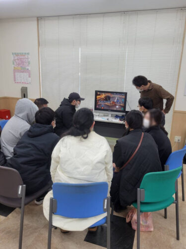 テレビゲームの様子です。観客である利用者さんが見守る中、技を炸裂しています!