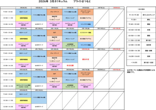 株式会社アストコ > お知らせ > ブライトまつもと2026年3月カリキュラム
